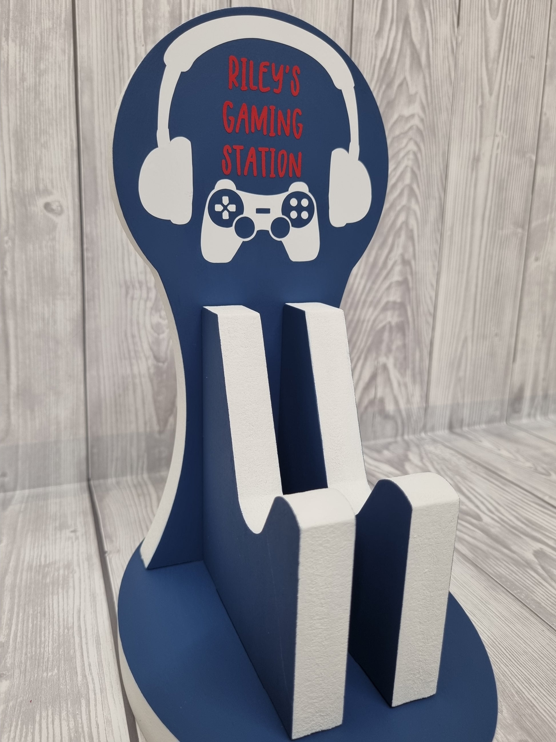 Available for both playstation and xbox controllers, these gaming stations are perfect for holding headphones too. Can also be made with for two controllers.