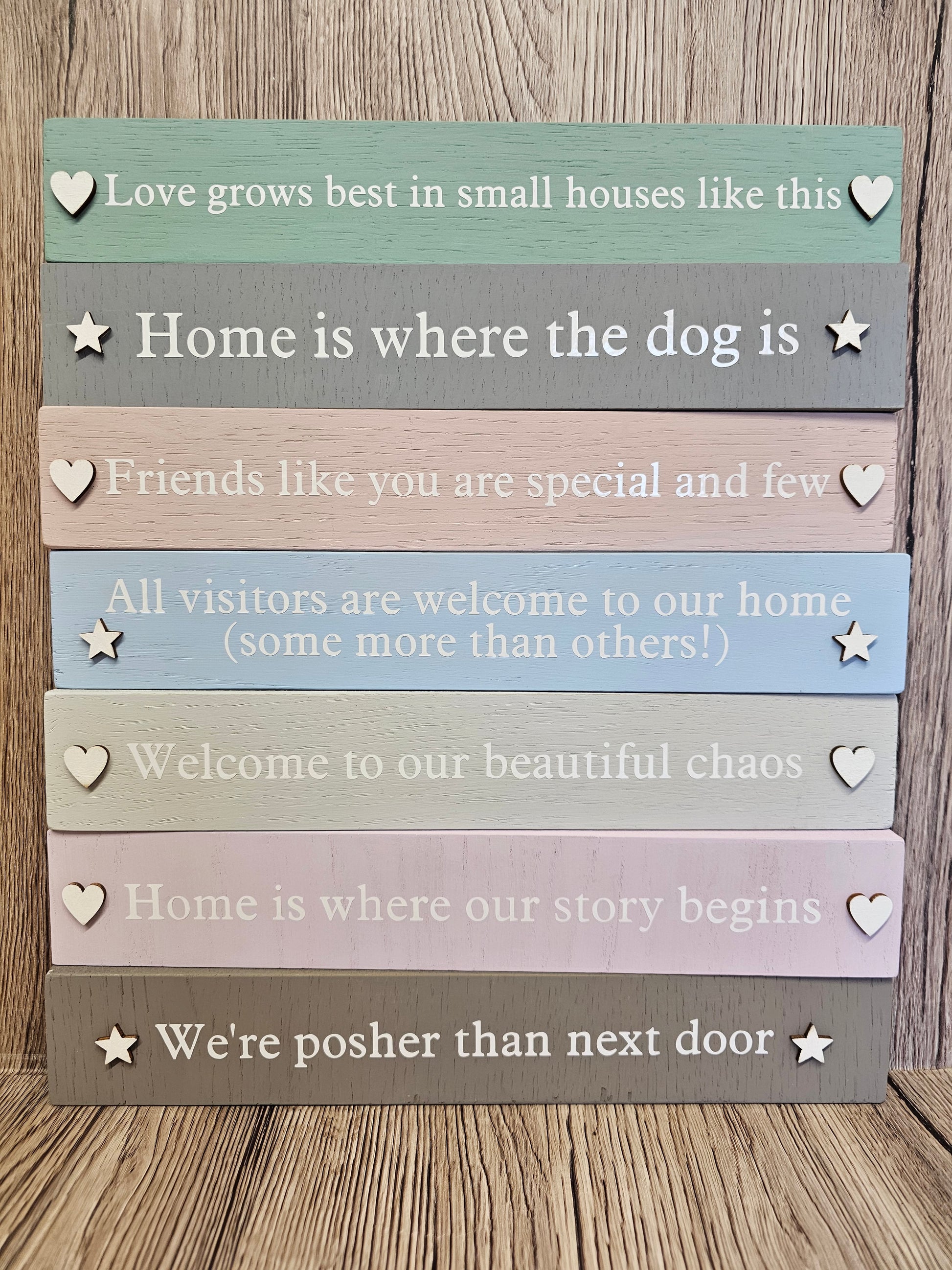 Freestanding Oak Veneer wood block with beautiful quotes for the home. In seven different muted shades. Available to order in any of the colours with any of the quotes, or personalise with a quote of your own!